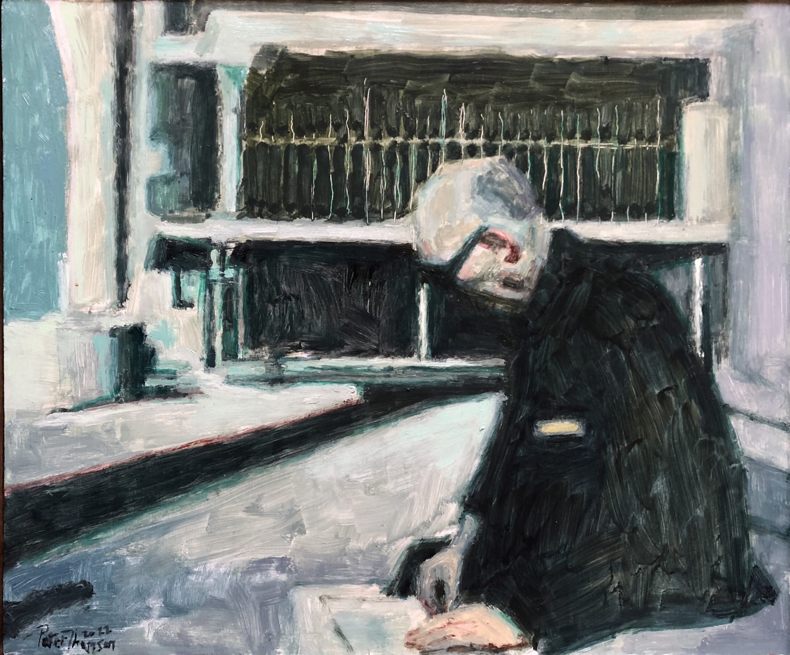 Peter is inspired by artists such as Edward Hopper, Vilhelm Hammershoi and Post Impressionists such as Vuillard and Bonnard, drawn by their handling of paint and subject matter, their works continue to inform his practice.